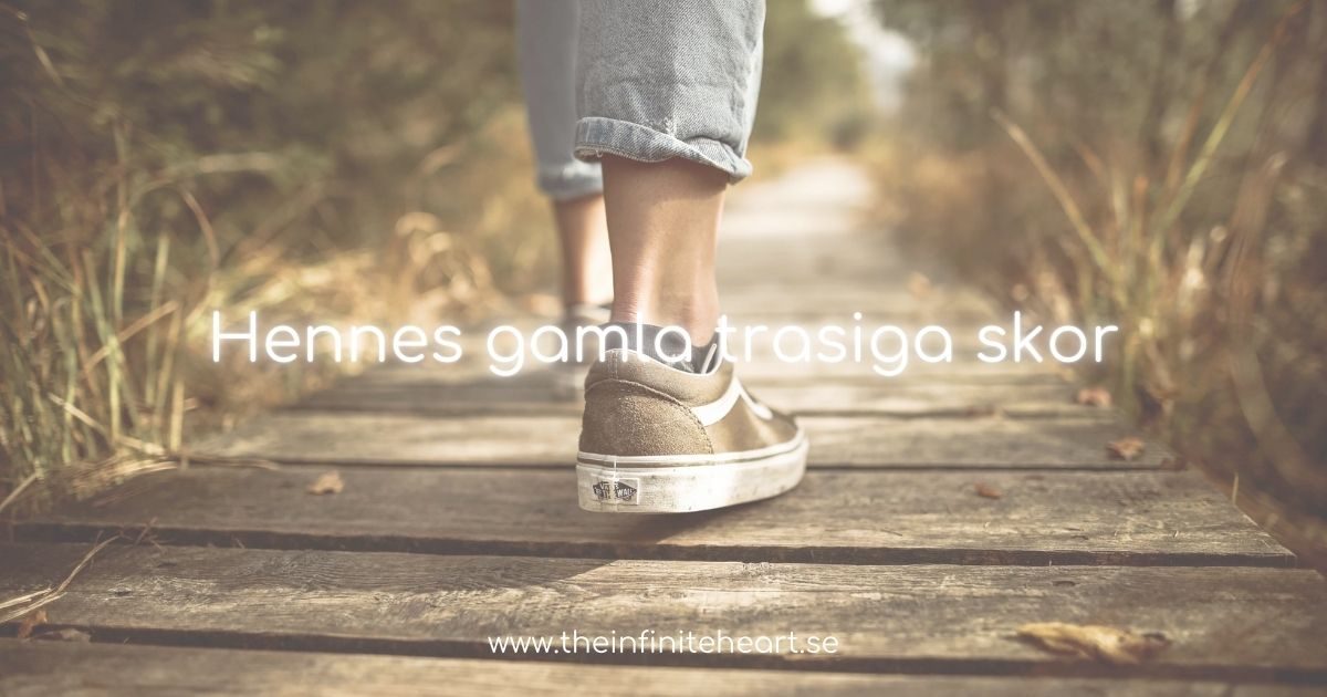 Vid vägens kant låg hennes gamla trasiga skor, helt utlämnade och övergivna. Hon kände en ledsnad när hon iakttog deras utsatta position där för väder och vind. Samtidigt kände hon att dem fick ett värdigt slut där i jordens varma famn. Med vattnets renande kraft som porlade fram, med solens strålar glittrande som stjärnglans över det slitna lädret. Dem hade burit henne väl, gjort sitt jobb att skydda hennes fotsulor mot den steniga mark hon länge hade vandrat på.